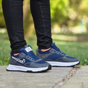 فروش عاالی کفش کتونی اسپرت مردانه و پسرانه مدل نایک شیک و خاص رنگ سورمه ای طوسی