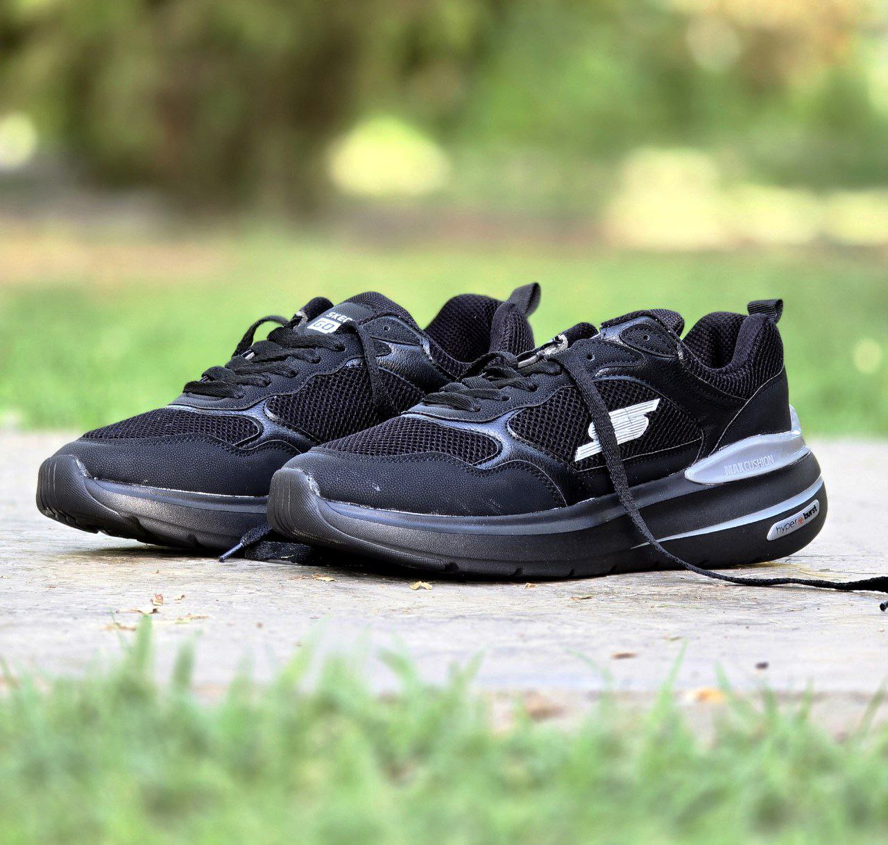 حراج بی مانند کفش کتونی اسپرت مردانه پسرانه بزرگپا مدل اسکیچرز محکم و بادوام رنگ مشکی تمام